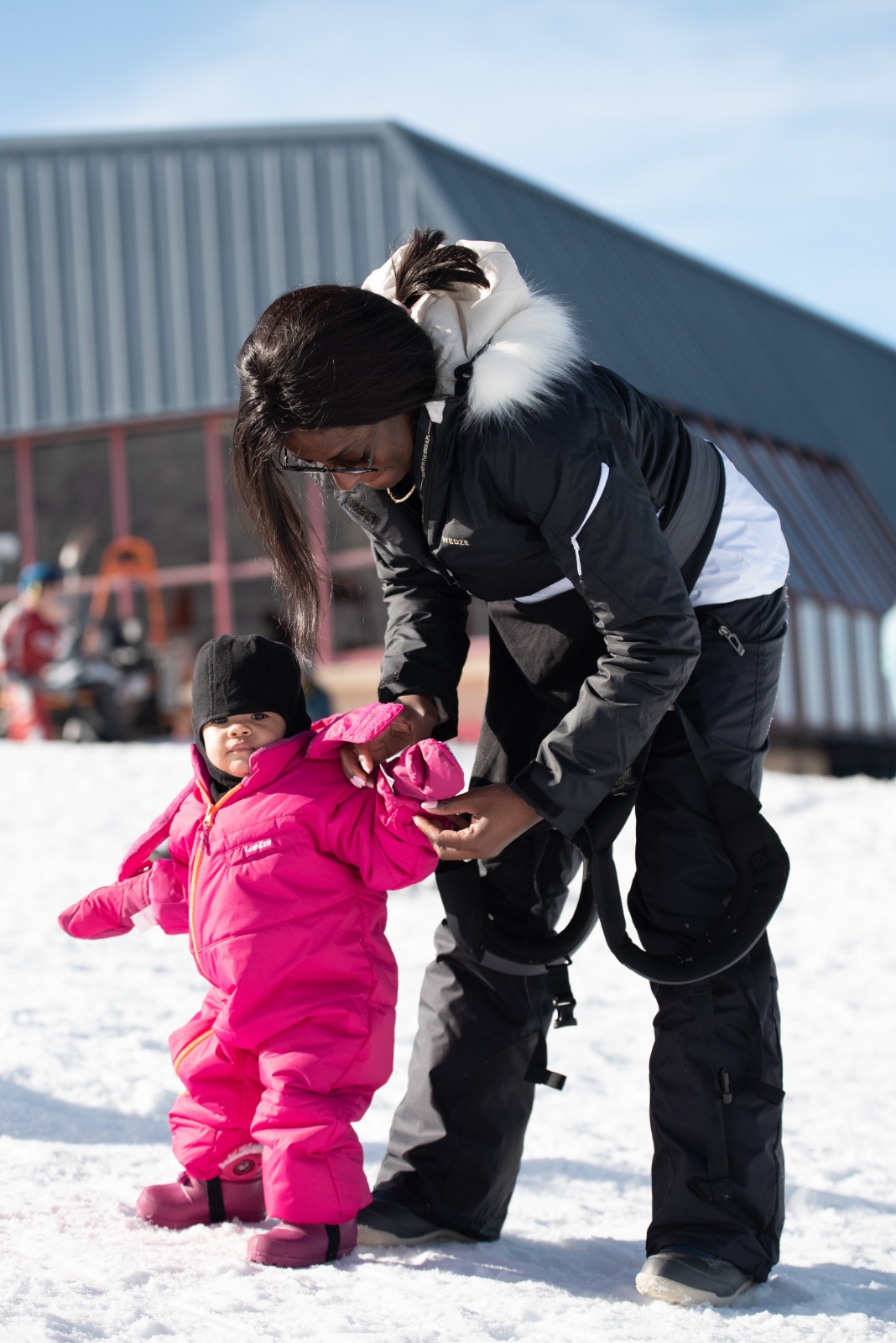 Première fois au ski pour les enfants, première fois au ski en famille. Première fois à la montagne.